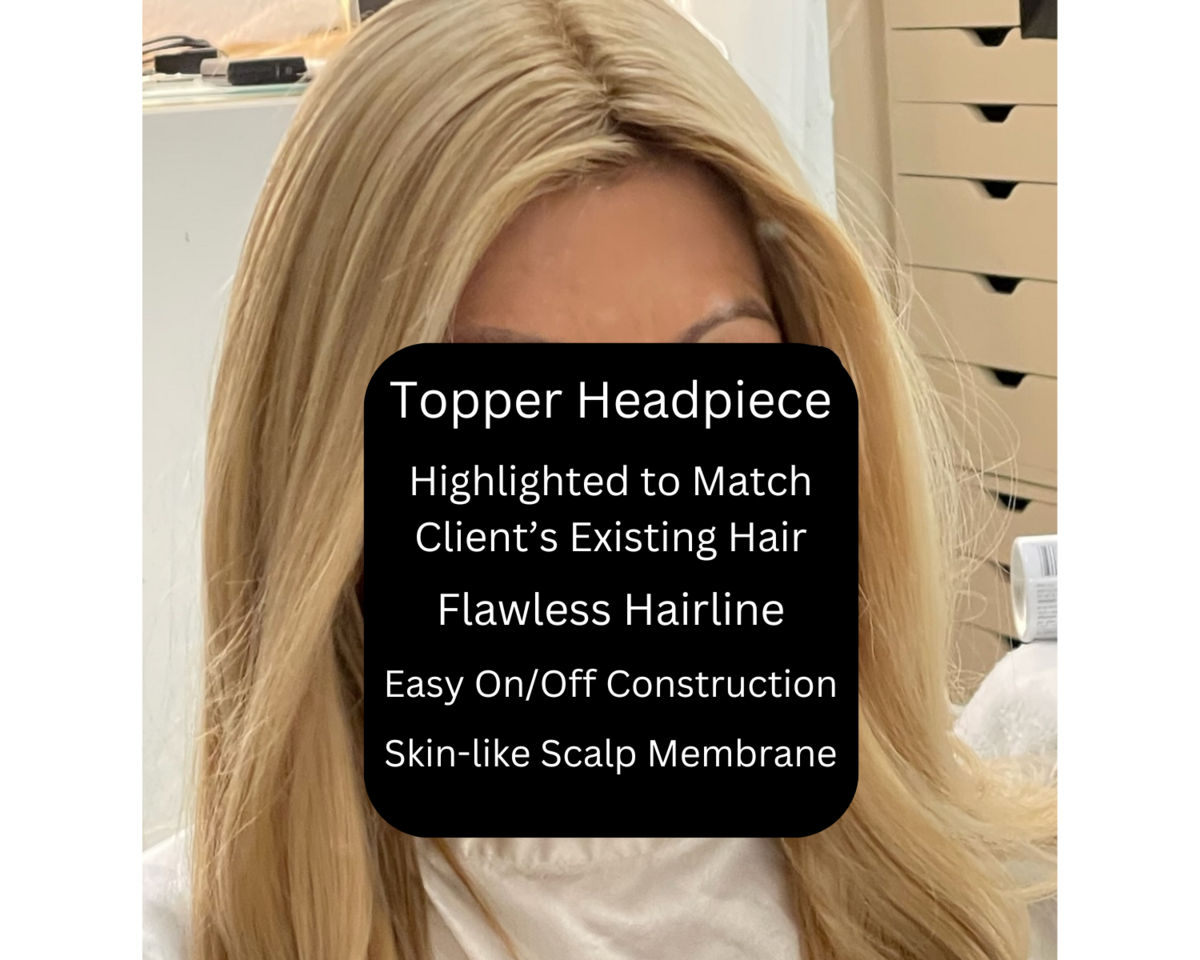 Partial hair loss, thining, or alopecia? Our toppers or headpieces are customized to fully integrate into your existing hair to become part of you and to be indistinguishable from your natural hair.